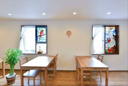 雰囲気: ステンドグラス装飾が施された、オシャレな空間がお客様を魅了します。