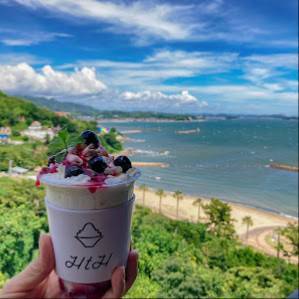 新食感デザート「ピンス販売店」海noueは、季節のデザートを楽しみながら、気軽においしい時間を過ごせるお店です。ランチ時にはデザートとともにコーヒーや軽食を楽しむことができ、インスタ映えする美しい景色も魅力です。