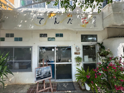 以前から気になっていたお店。 先日東京へ帰る前に行こうかと思ったら、20日~26日まで休業していたので、27日に訪問。 歩いていたら島の知人に会ったので、ランチ誘って一緒にてんだ花へ。 近くに岩山の「てぃんだばな」があり、そこから名前取って「てんだ花」なんだろうな。